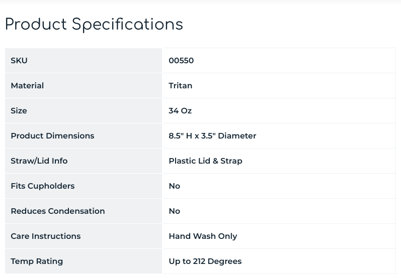 The Tritan Wide is a 34oz single wall Eastman Tritan™ water/sport bottle. Tritan is a tough, shatter-resistant, 100% BPA free copolyester that can withstand sub-freezing and boiling temperatures. The black plastic twist-on cap is attached to the bottle via a tethered strap. Raised ounce markings are present on the body exterior for tracking water intake.